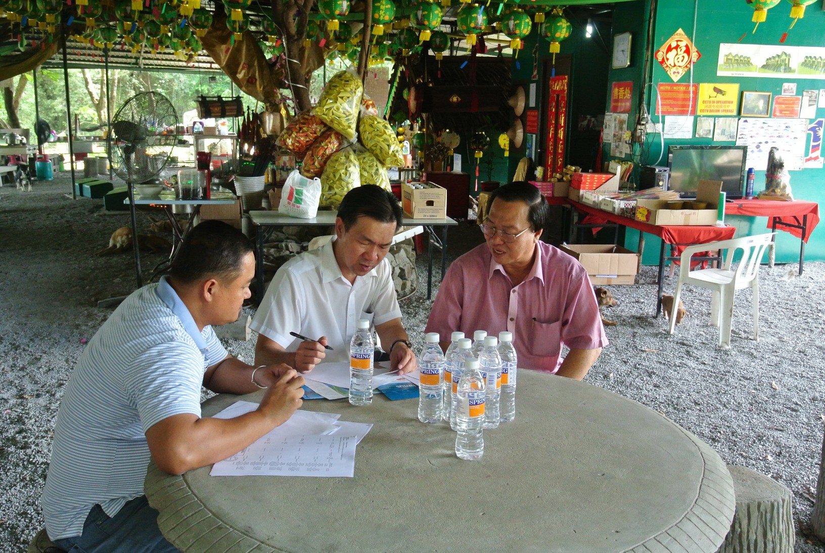 Immediately upon receiving the request for assistance from Kapitan Lim, SUPP Public Complaints Bureau Chief, Wilfred Yap went to the Tanjung Datuk Kong Temple to assess the situation. It was discovered that the Tanjung Datuk Kong Temple currently obtained its electricity and water supply free of charge from Kuching Barrage Management Sdn Bhd. However due to some pressure received (which was not revealed), an officer of Kuching Barrage Management had informed the caretaker of Tanjung Datuk Kong Temple that the electricity and water supply to the Tanjung Datuk Kong Temple will soon be terminated.