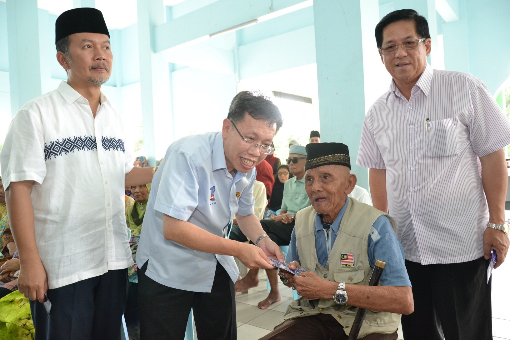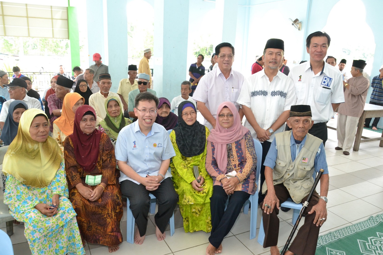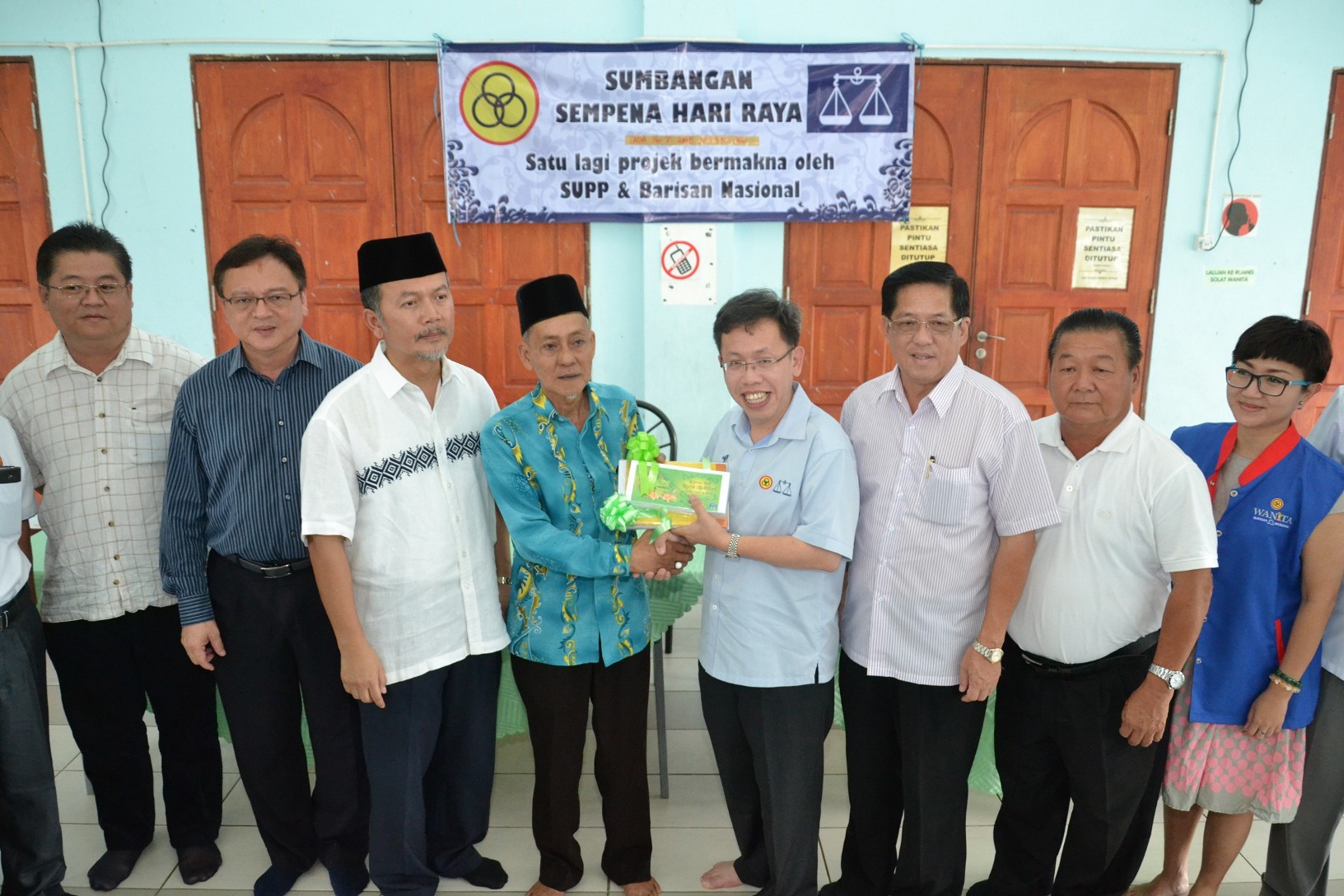 砂人联党石角支部与哥打圣淘沙支部于今日在甘榜哈芝巴基,与土保党石角支部一起分发开斋节食品礼品给予当地的居民。共有150户家庭受惠。