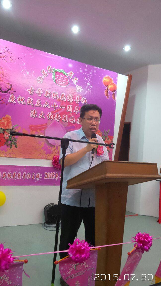 这是他日前应邀出席古晋新桃义慈善社配合庆祝成立61周年纪念及陈大伯寿辰及扩建社所舞台所举办的好歌手慈善杯挑战赛晚宴上致词时,这么表示。