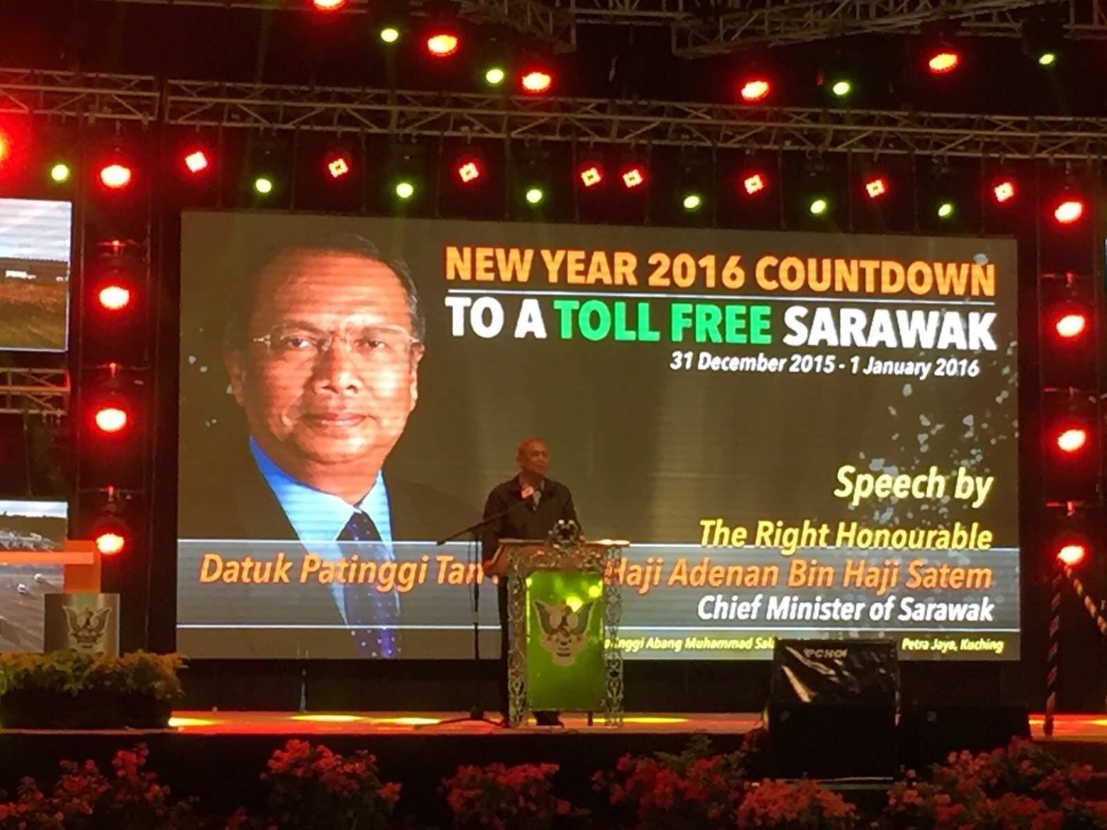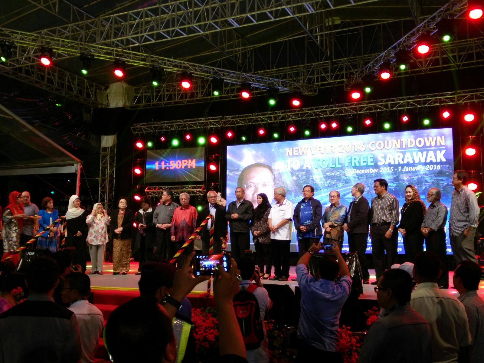 首席部长拿督巴丁宜丹斯里阿德南沙登于去年12月31日午夜主持敦沙拉胡丁大桥新年倒数与废除收费庆典,在场约有1万5000名民众参与其盛。