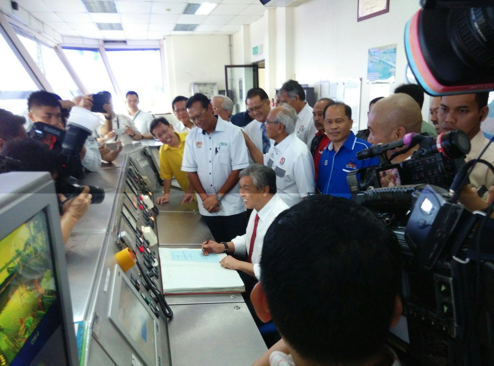 副首相拿督斯里阿末扎希于5日巡视古晋水闸,以了解水闸对于防范水灾的功能。