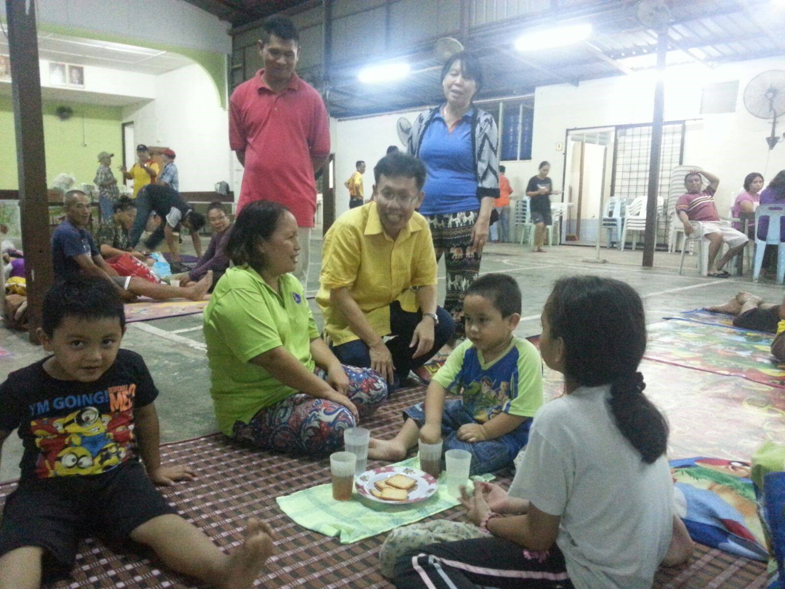 SUPP President, Senator Datuk Dr Sim went down to the evacuation centre at Kpg Bombok in Batu Kitang to help out with the flood victims.