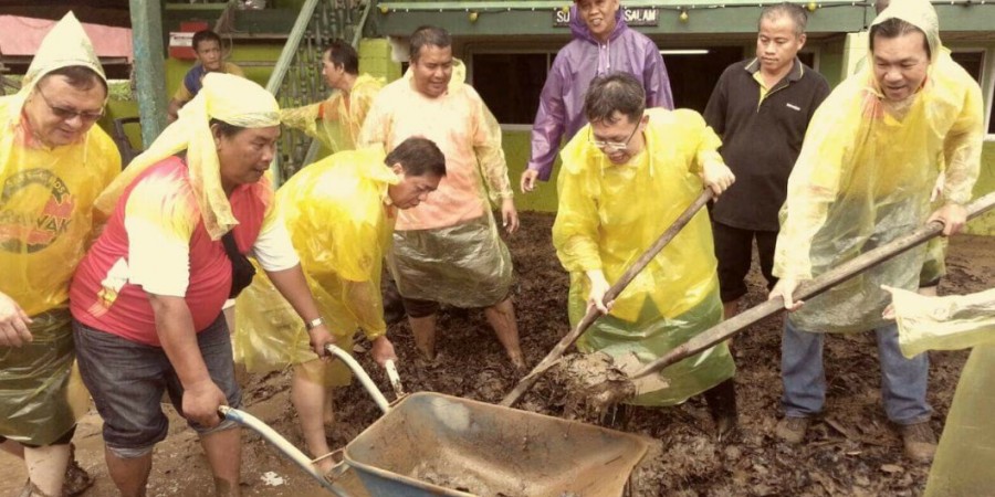 President of SUPP Senator Datuk Dr. Sim Kui Hian and party members did their part to help the unfortunate by helping to clear up a number of houses at the Kampung Sinar Budi Lama recently.