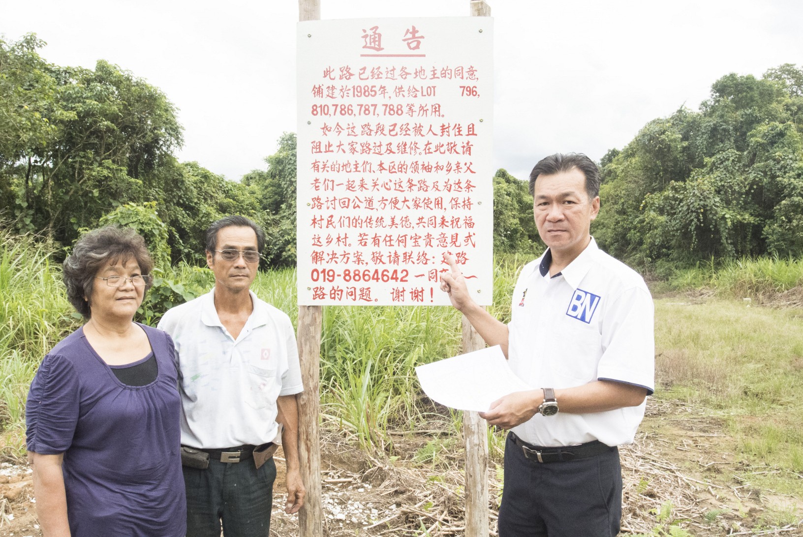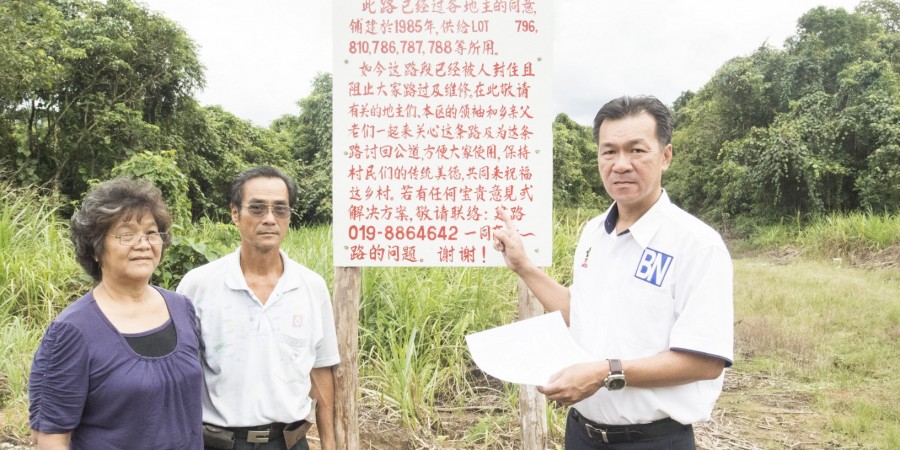 SUPP Public Complaints Bureau (SPCB) was recently approached by a landowner at Sungai Moyan, Batu Kawa area, who complained that the adjacent landowner who owned a parcel of land in front of the complainant’s land have now refused to allow him a right of way to his land even though he has been using the road access over his neighbour’s land for a long time.