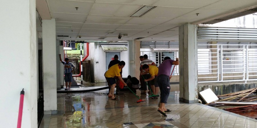 SUPP Volunteer helping clean up Chung Hua Primary School No 5 and the Sarawak General Hospital yesterday, after Kuching town was flooded due to consistent rain.