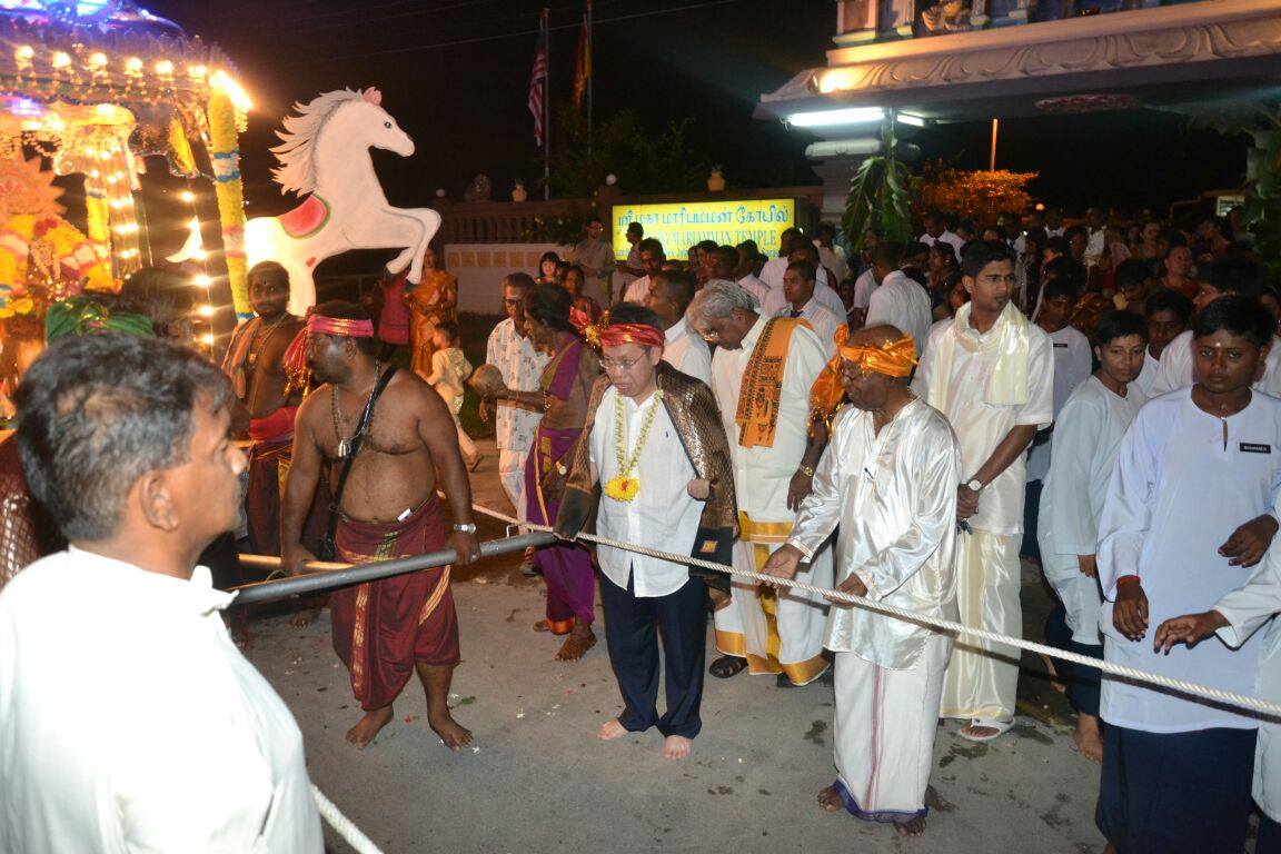砂人联党主席拿督沈桂贤上议员于昨晚受邀出席位于大石路的Sri Maha Mariamman兴都庙所举办的Navaratri庆典。 他在这项活动上参与兴都人的传统习俗仪式,感受兴都人的文化特色。 他喜见在砂州的兴都人欢庆自己的传统节日,展现砂州多元文化交融的一面。 沈桂贤是首次到访Sri Maha Mariamman兴都庙,值得一提的是,其父亲已故丹斯里拿督阿玛沈庆鸿是当年参与这座兴都庙的奠基仪式的嘉宾之一。 出席者包括人联党中央署理秘书长薛华东。