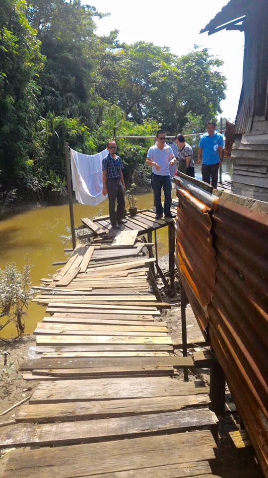 砂人联党青年团宣教秘书符祥威律师今早前往和平路南段视察。 该地区连接双溪亚棒河边住宅区的木桥维修工程,此前经由符祥威呈交给首席部长拿督巴丁宜丹斯里阿德南沙登后,获得首长批准总值5万令吉的拨款,进行相关维修工程。