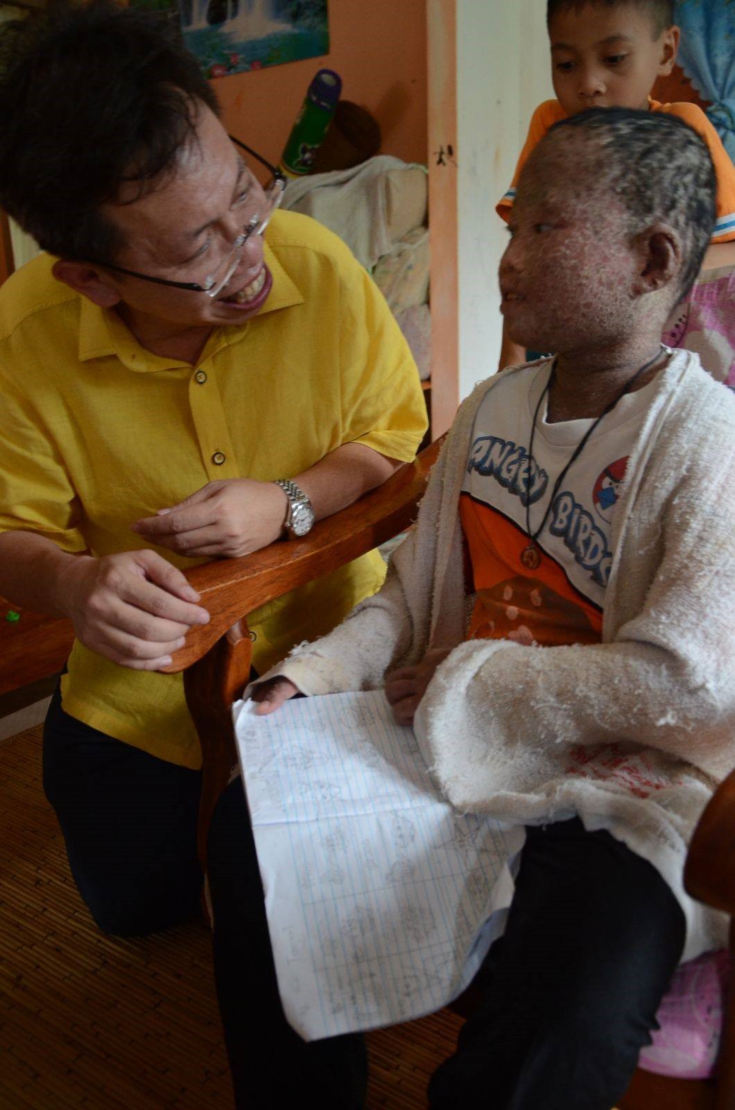 砂人联党主席拿督沈桂贤上议员于日前前往石隆门探访患上“鱼鳞斑”怪病的男童,同时也移交联邦政府拨款予家属。 不幸患上怪病的男童名为罗兰里蒙阿纳乐津(ROLAND RIMONG AK LEJINE),今年9岁,在7岁以前和其他同龄小孩无异,但却突然无故患上怪疾,从原本健康的身体状况忽然全身上下皮肤似被烧伤后痊愈中的状况,原本如同常人皮肤的他,却因此变得如鱼鳞般。 尽管家人踏遍无数医院寻求协助仍无太大改善,甚至在绝望之余也无数次撒钱寻求巫师帮助,奈何小罗兰病情依旧没有好起来。 沈桂贤探访男童时向媒体说,将协助男童家属寻求向福利局协助,在这之前,先给予为数500令吉的联邦政府拨款(Mayang Fund)。 同时也是著名心脏科医生的他表示,男童皮肤病情最重要的是居住环境卫生要好,而庆幸小男童的家境也算卫生,这将减低皮肤受感染的情况发生。 他称,将与中央医院皮肤专科医生了解男童病情,并且也会把男童病例报告吉隆坡的皮肤专科,以了解男童进一步的治疗。
