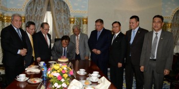 首席部长拿督阿玛阿邦佐哈里于今日在国父大厦办公室,与副首长、内阁成员及砂国阵领袖进行闭门会议。 出席者包括副首长拿督阿玛道格拉斯、丹斯里詹玛欣、拿督阿玛阿旺登雅、人联党主席兼地方政府及房屋部长拿督沈桂贤、砂国阵秘书长拿督斯里斯蒂芬伦迪及民进党主席拿督斯里张庆信。 在会议结束后,众人为今日迎来67岁生日的阿邦佐哈里庆祝生日。