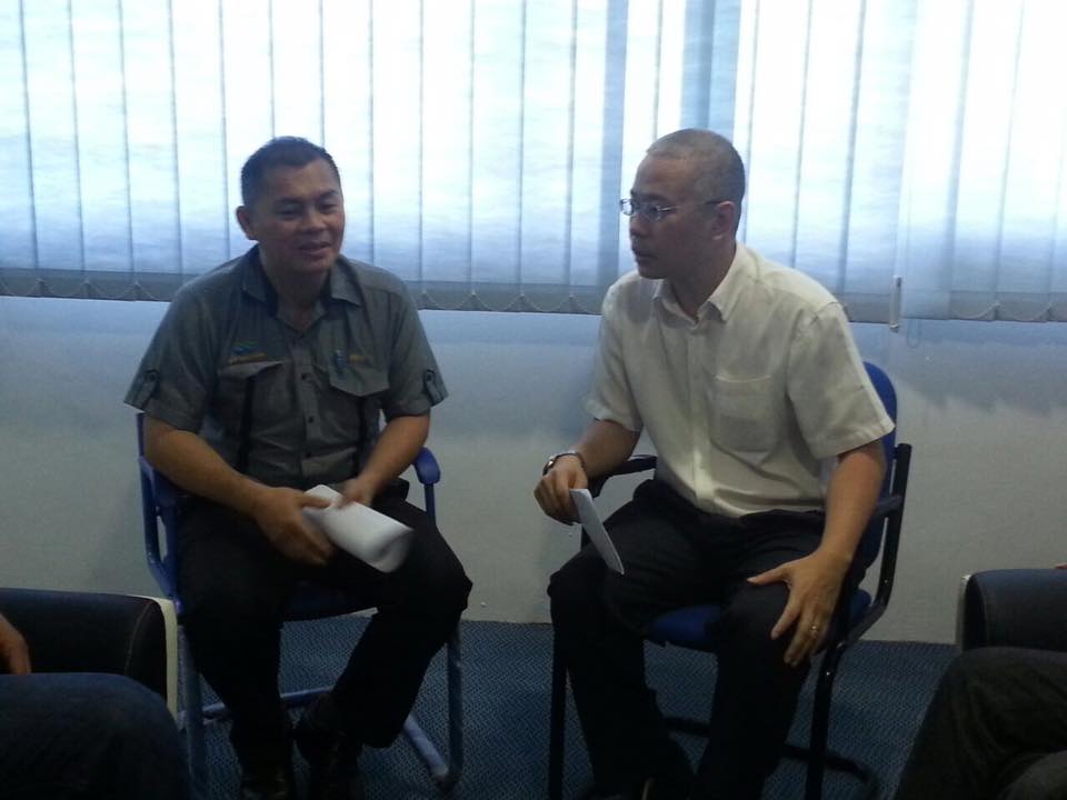 首长署政治秘书邓文武于日前礼貌拜会泗里街水利灌溉局省工程师邱习典。