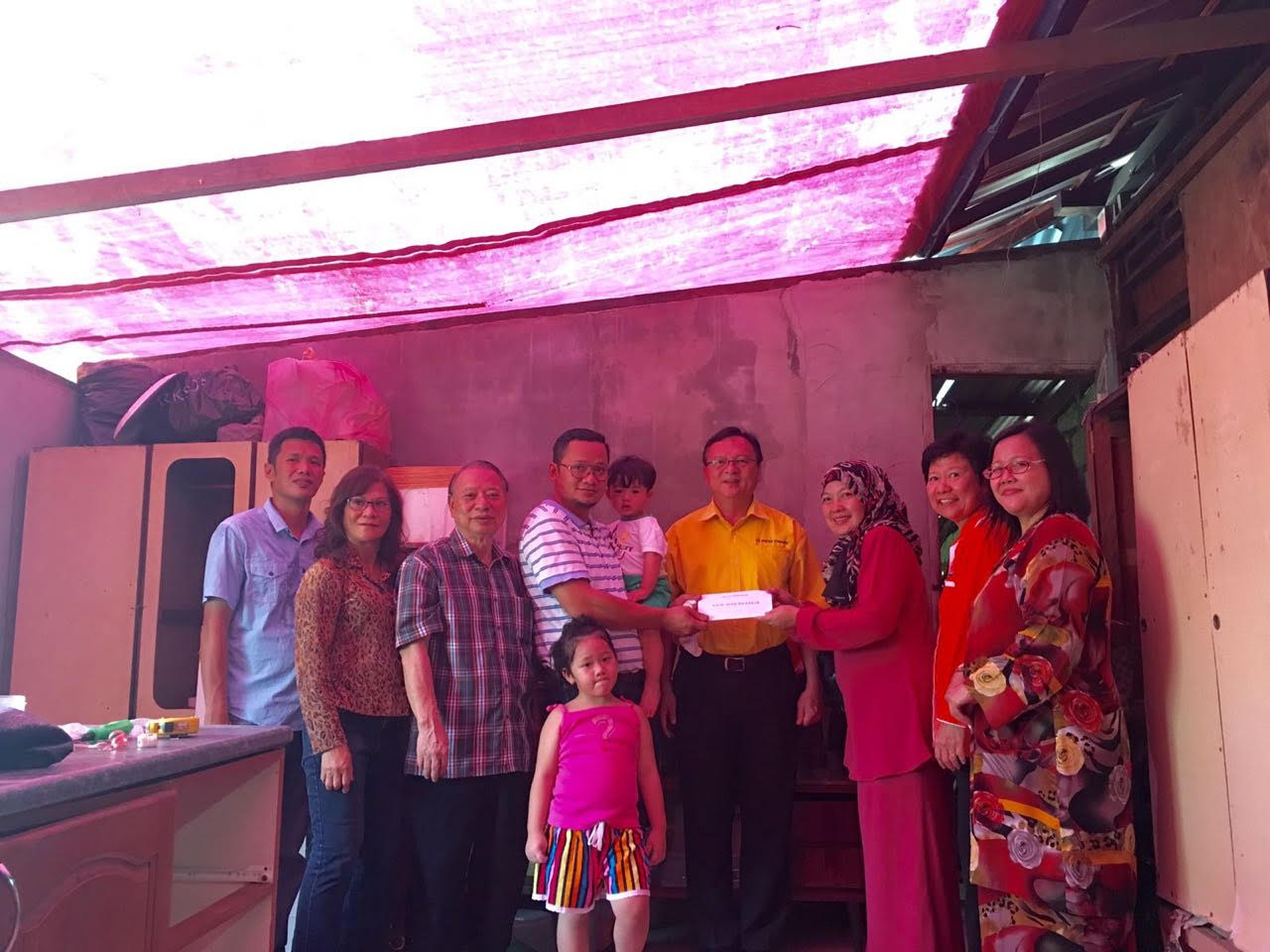 Within a week, today the team from Kebajikan, lead by Hjh Norhayati Bt Hj Abdul Rahman, Peg Kebajikan Masyarakat Bhgn Kuching. Together with Kapitan Chong Wei Chen and Cr. Shirley Pui we paid a visit to Mr Denni Rakum. Welfare department presented Mr Denni cash assistance of maximum Rm2500, YB Lo assisted with an additional Rm500 cash to help Mr Denni complete the new roofing works.