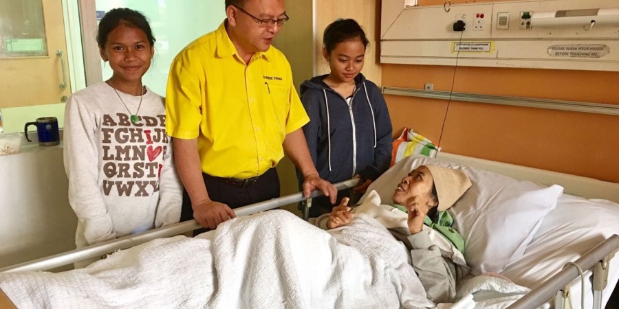 Batu Lintang State Assemblyman, Lo Khere Chiang paid a visit to Yon bte Wek, a 71 year old woman from Batu Kitang Lama who is waiting to be operated on her femur.