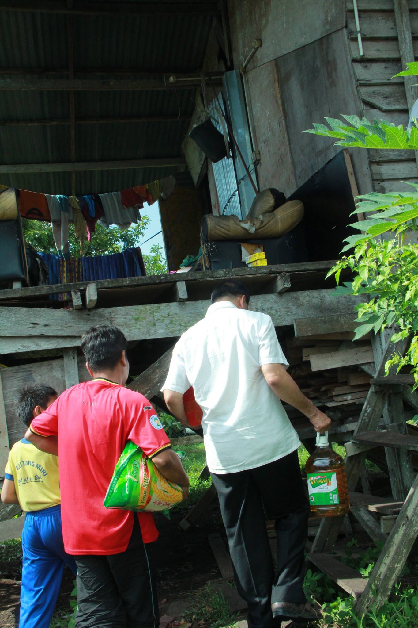 砂人联党中央秘书长兼卑尔骚区州议员拿督陈超耀于日前,与卑尔骚支部执委,青年团及妇女组一同拜访一户贫困家庭。