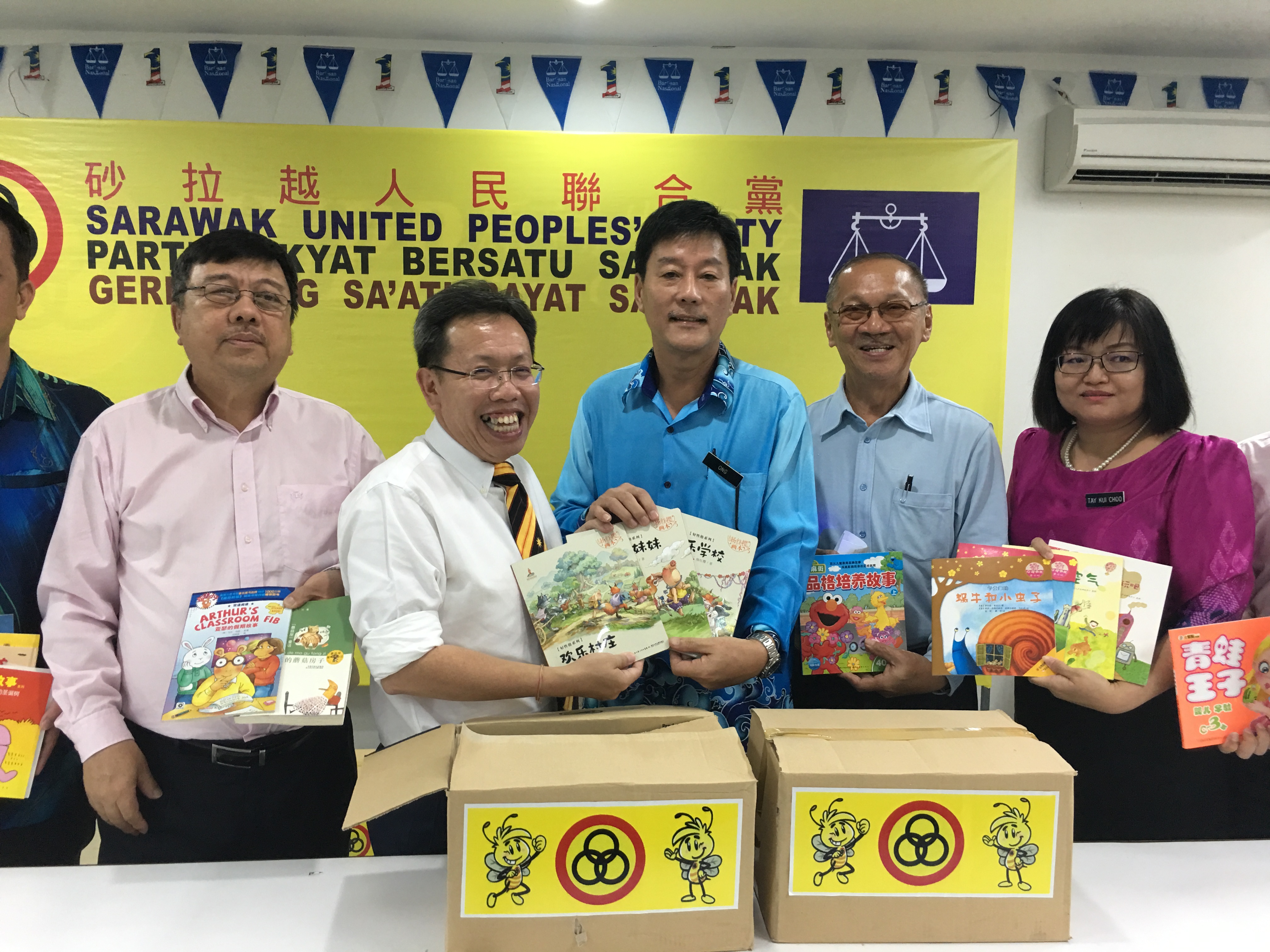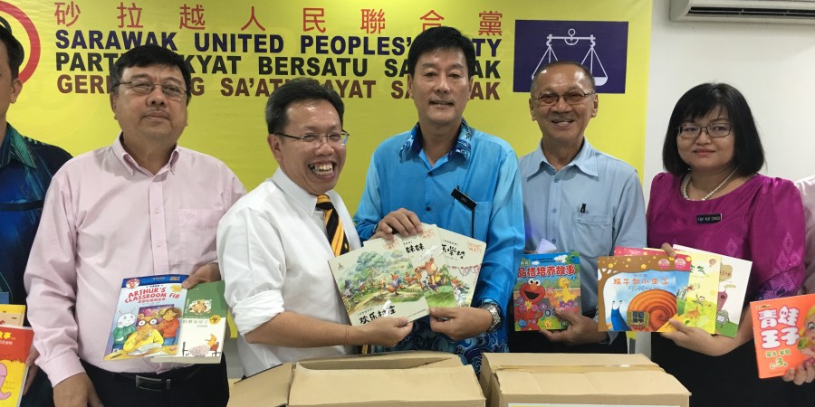 砂人联党主席兼地方政府部长拿督沈桂贤于本月9日受邀主持古晋中华文化艺术促进协会赠送书籍予晋汉省华小教师公会活动,该活动是在砂人联党总部会议室举行。