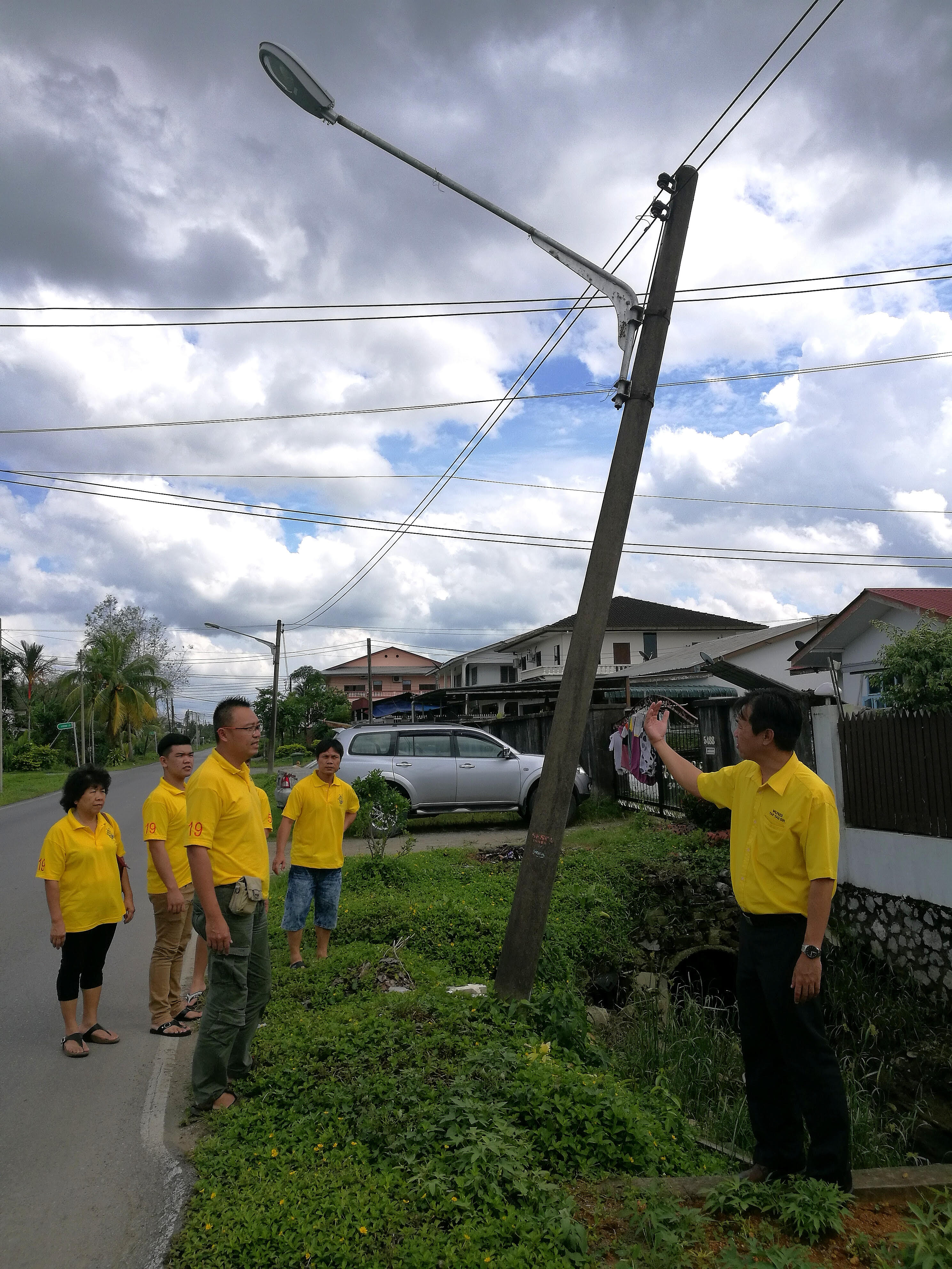 砂拉越人民联合党公共投诉局已将相关问题向南市市政局及砂电力公司反映;并希望他们可以尽快修补受影响的路段及对倾斜电杆进行校正。