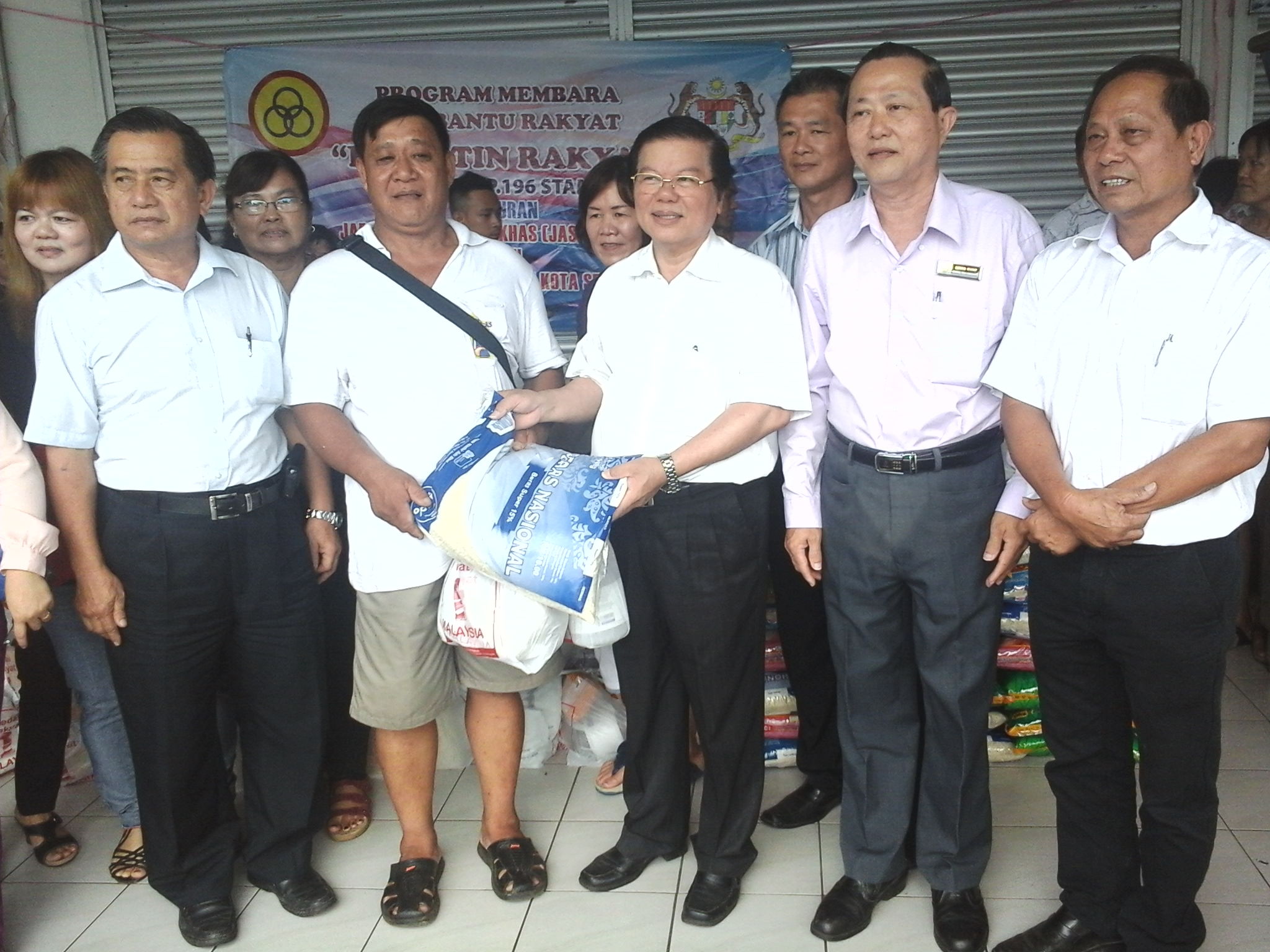 One咖啡店联合举办爱心慈善活动,颁发日常用品、米粮等给哥打圣淘沙州选区的贫困家庭,以体现该党及政府特别事务局对贫穷家庭的关心与援助。