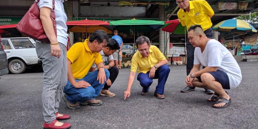 日前,三哩巴刹也进行重铺柏油工程,但是工程有多个部分并不能让沈桂贤满意,结果他招来巴达旺市议会人员,亲自到场指出工程出现不足问题。