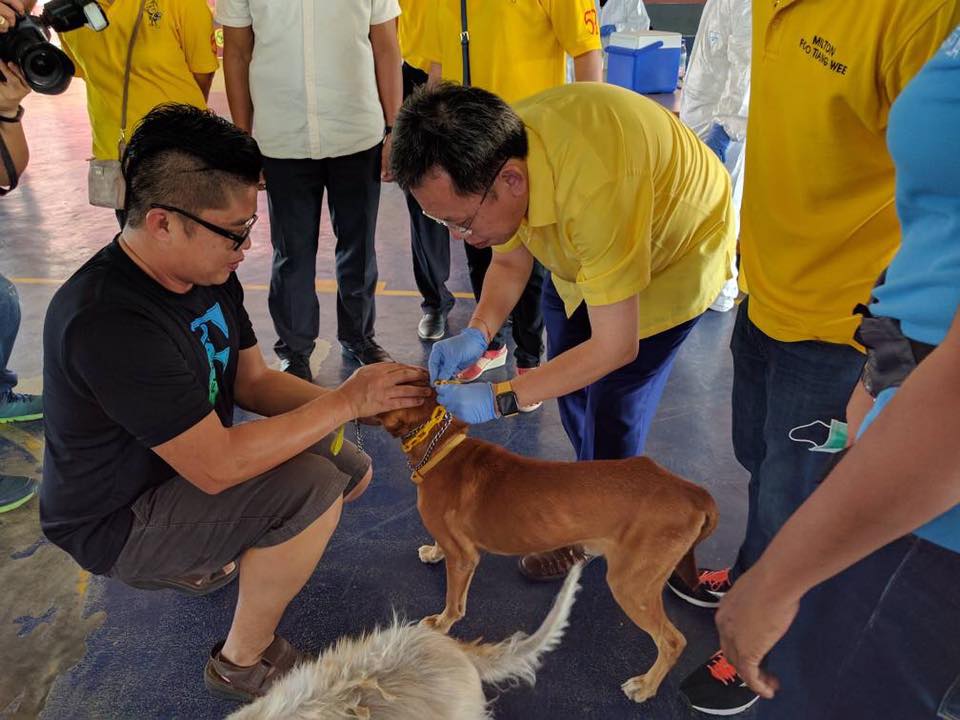他是昨日在新渔村雨盖篮球场巡视兽医局为狗只注射疫苗活动上促请已为狗只注射疫苗的民众,必须看顾好自己的狗只,被让狗只到处乱跑。