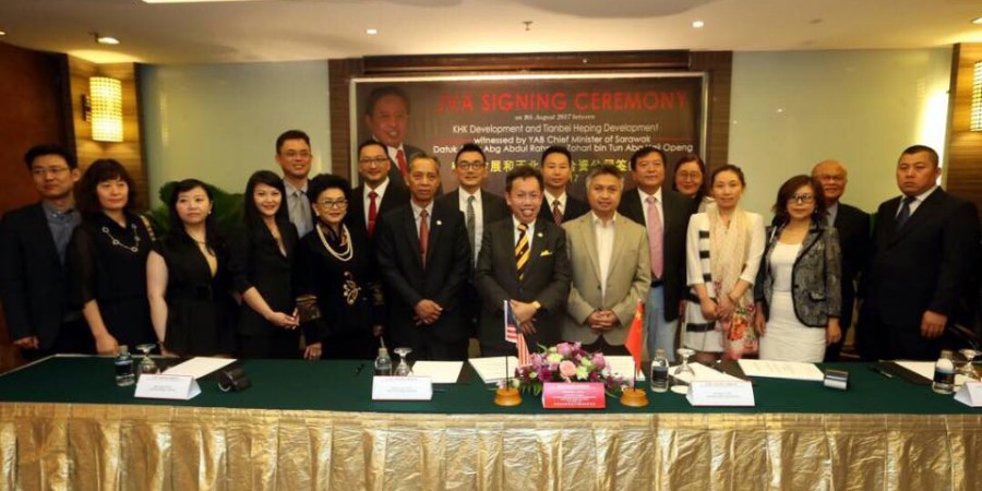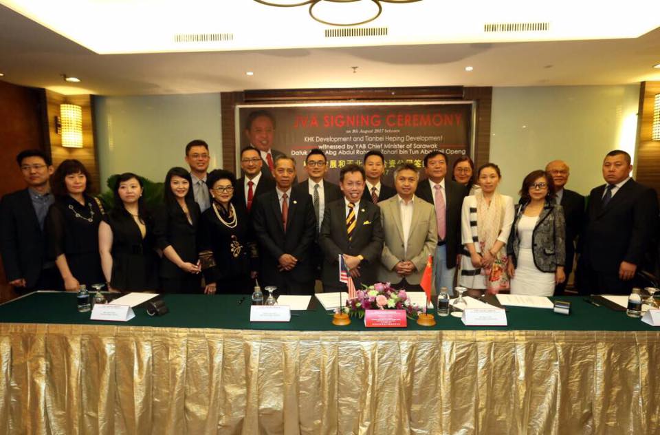 砂地方政府与房屋部长拿督沈桂贤日前代表砂首长拿督阿玛阿邦佐哈里出席见证KHK发展和天北和平合资公司签约仪式。