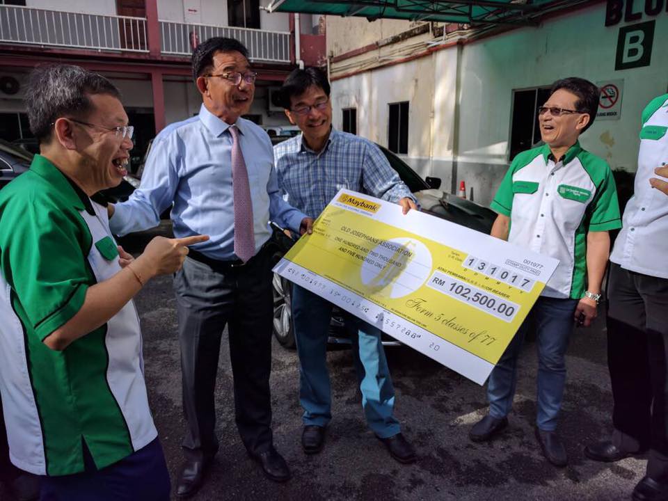 Some old boys of St Joseph’s School have taken up the challenge to raise funds to restore the unsafe Mill Hill Block of classrooms. This time around, a total of RM102500 was pledged by Class ’77 in the hope to add on substantially to the total sum collected so far by Class ’79 and Class ’83-85. The cheque was presented to the President of Old Josephians’ Association, Datuk Professor Dr Sim Kui Hian in the school premises. During a cheerful banter in the well-loved school canteen, the Class ’77 members joked about their concerted efforts to have outdone their predecessors.