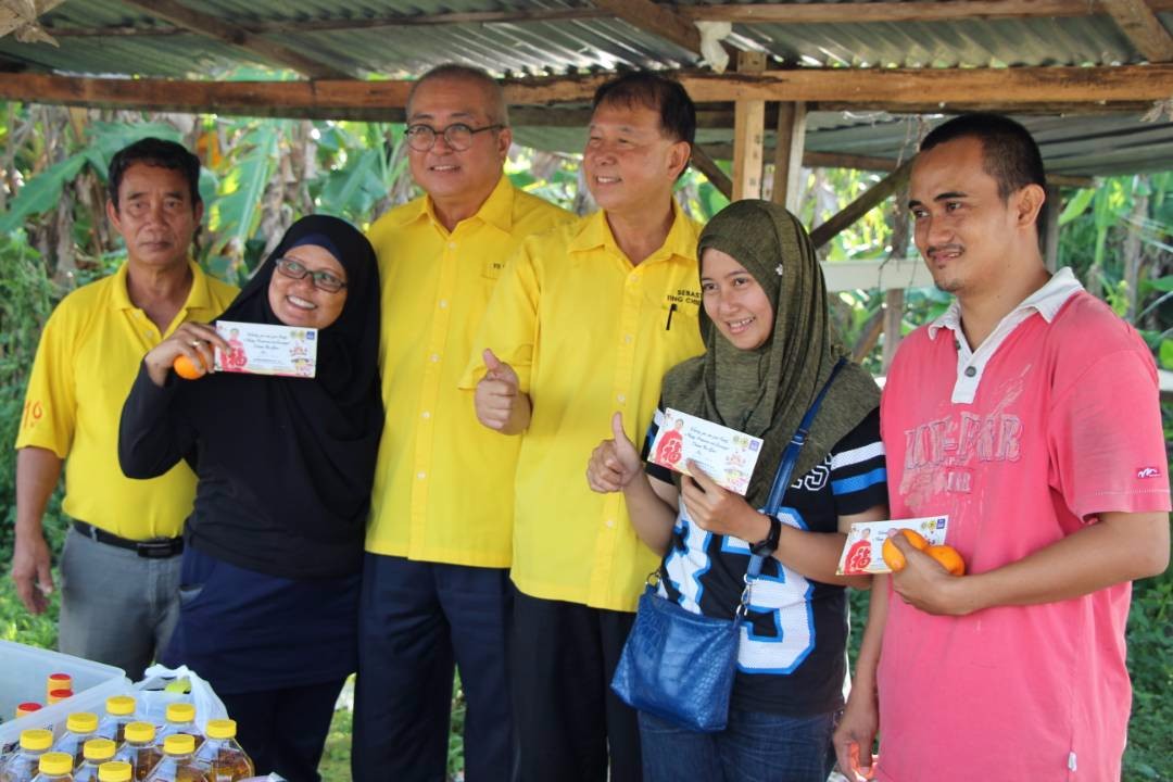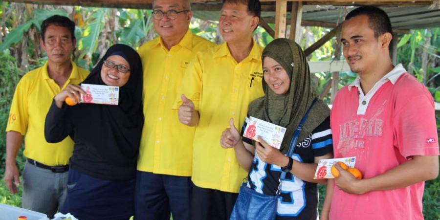 趁着华人农历新年即将到来,砂人联党卑尔骚区州议员拿督陈超耀律师日前在美里瓜拉巴南小贩中心派发年柑,向小贩献上新年祝福。