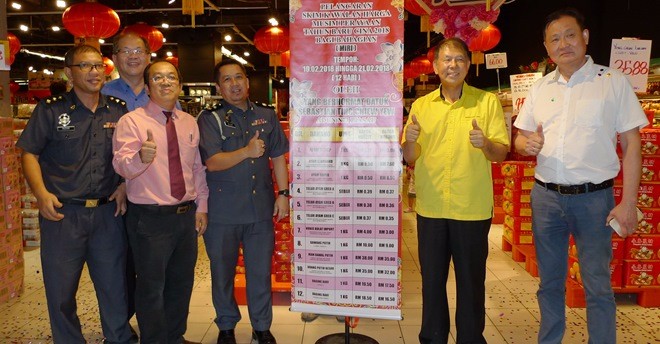 这项推展礼是在富丽华霸级市场举行,砂贸消局制定的春节统制品共有12种,分别是鸡只、鸡蛋、番薯、蒜、海产及猪肉等。商家在2月10日至21日期间须遵守条规,不可超过顶价。