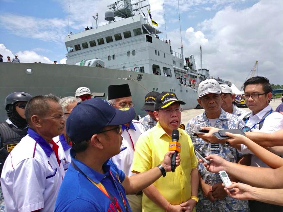 他出席大马皇家海军多用途战斗支援舰KD Sri Indera Sakti在古晋沈庆鸿码头举行的开放活动后,