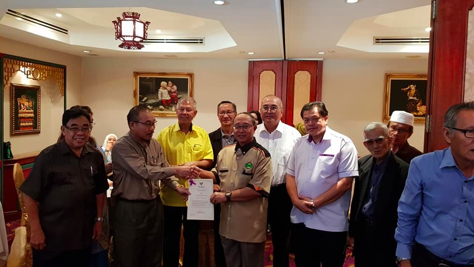 Piasau State Assemblyman, Datuk Sebastian Ting with Mayor Adam witnessed the handing over of Ketua Masyarakat Appointment Certificate (extension) to KK Salim (Kpg Hj Wahed), KK Darahaman (Kpg Pulau Melayu, KK Abdul Rahman (Kpg Piasau Fasa 1, and KK Hipni (Kpg Piasau Utara) yesterday.
