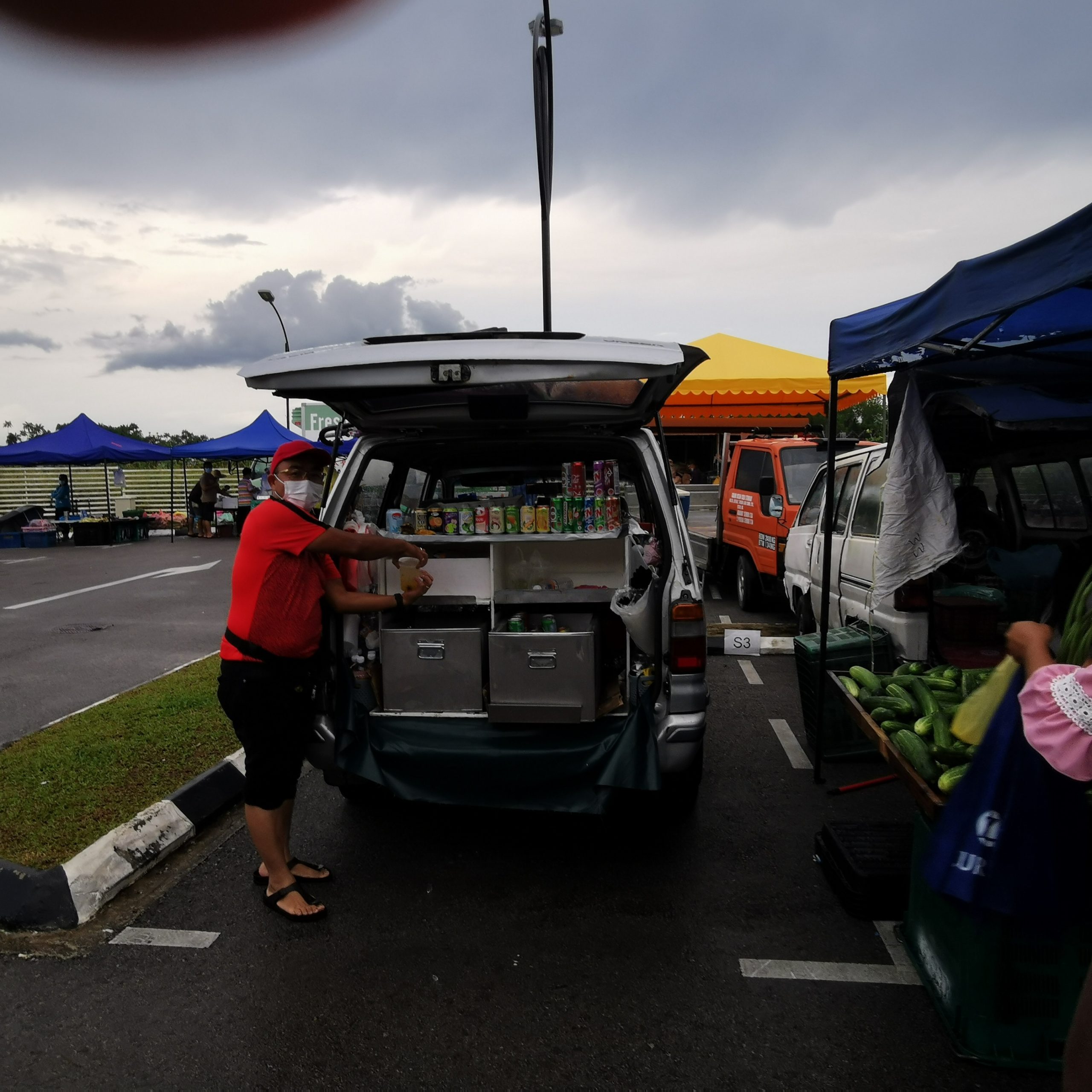 Kapitan Tan said to watch them do an honest business this way was heartbreaking so he decided to look for a proper space and equip them with proper faciliites. He set them up at Aeroville Mall car park with proper canopy so that they can trade in rain or shine.