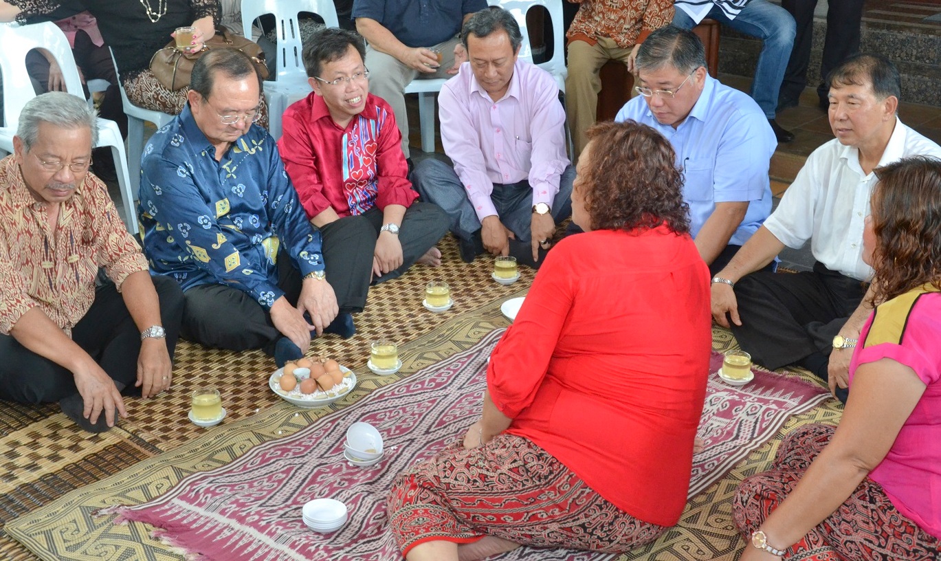 众领袖率先参与达雅族在节庆期间的传统祷告仪式,之后每人饮下一杯米酒,以示欢庆。