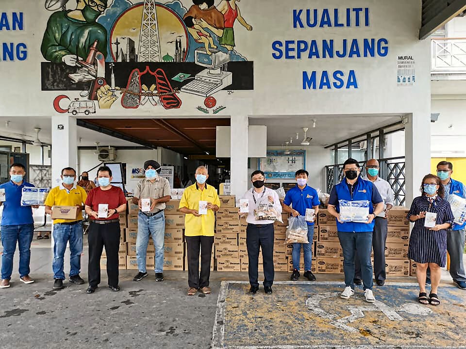 砂人联党卑尔骚区州议员拿督陈超耀律师见证美里扶轮社移交物资予前线医护人员。