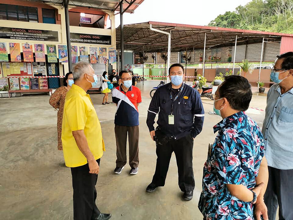 砂人联党卑尔骚区州议员拿督陈超耀律师密切关注美里圣约瑟小学雨盖礼堂工程进展。