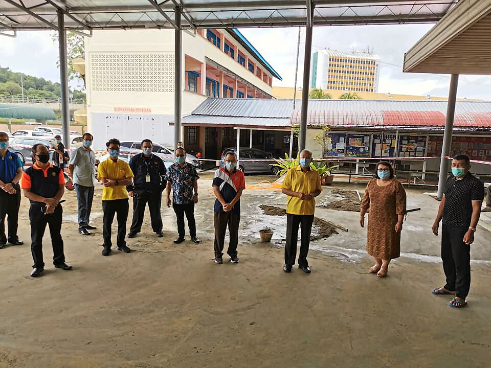 他于1月29日与砂公共工程局官员前往巡视该工程,在场包括家教协会主席、校长及承包商。