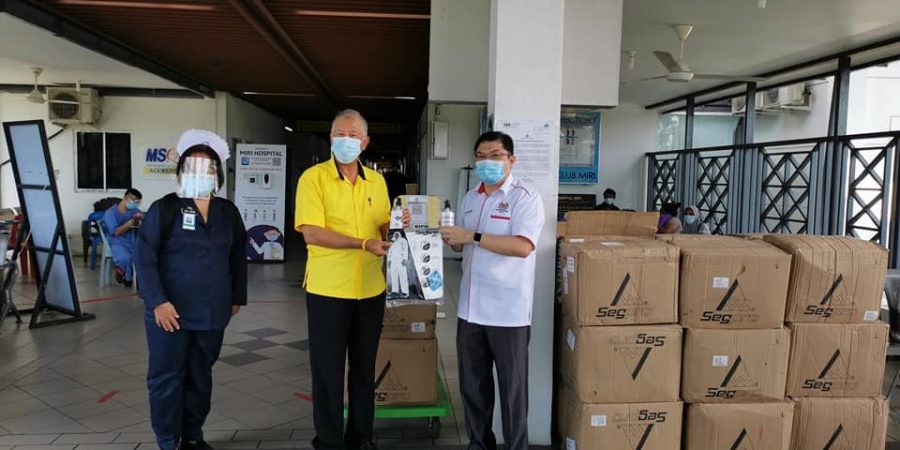 砂旅游、艺术与文化助理部长兼卑尔骚区州议员拿督陈超耀律师日前移交热心人士赞助的1000套个人防护装予美里中央医院。