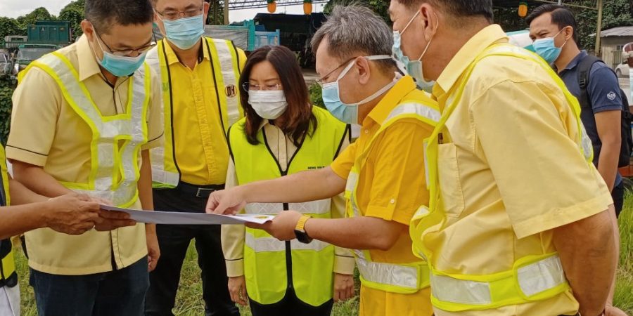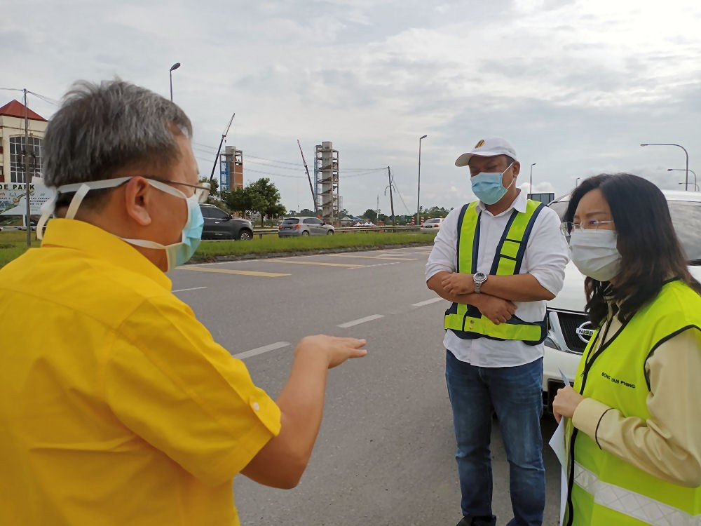 JKR Sarawak assistant director (Road Maintenance) Awang Fadillah and JKR Kuching Division assistant divisional engineer Bong Yan phing brief minister of Local Government and Housing Sarawak Dato Sri Dr. Sim Kui Hian on the project.