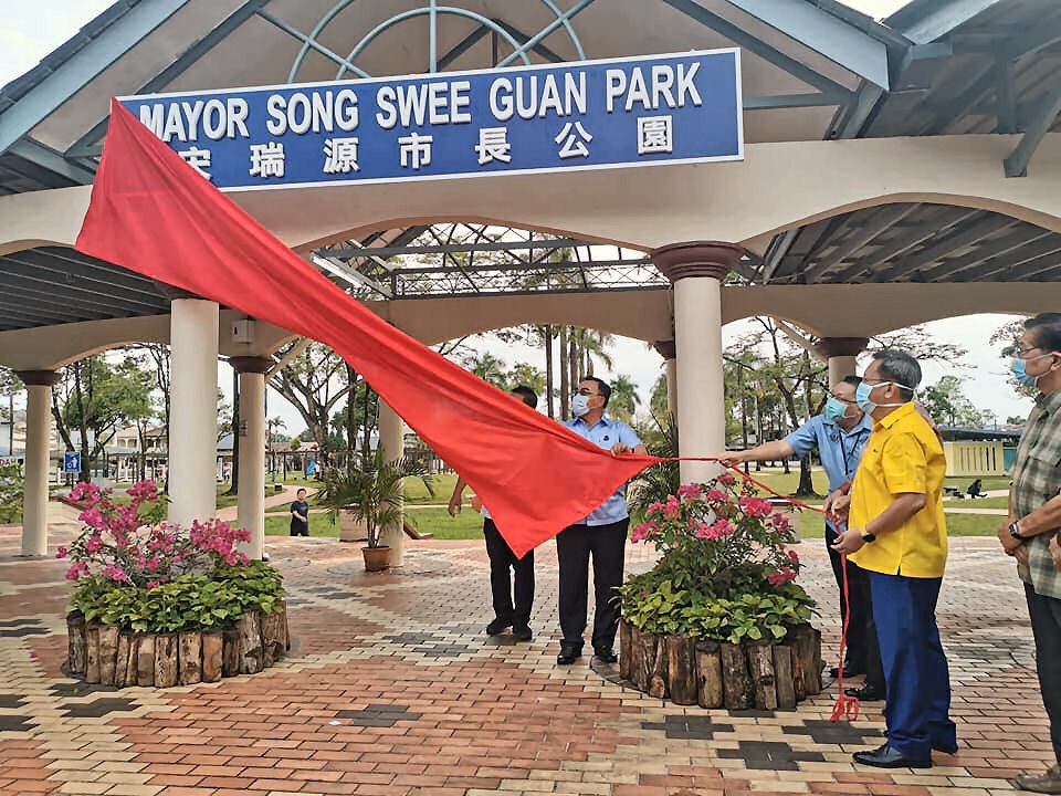 砂地方政府及房屋部长拿督斯里沈桂贤于4月12日上午,为“宋瑞源市长公园”主持命名仪式。