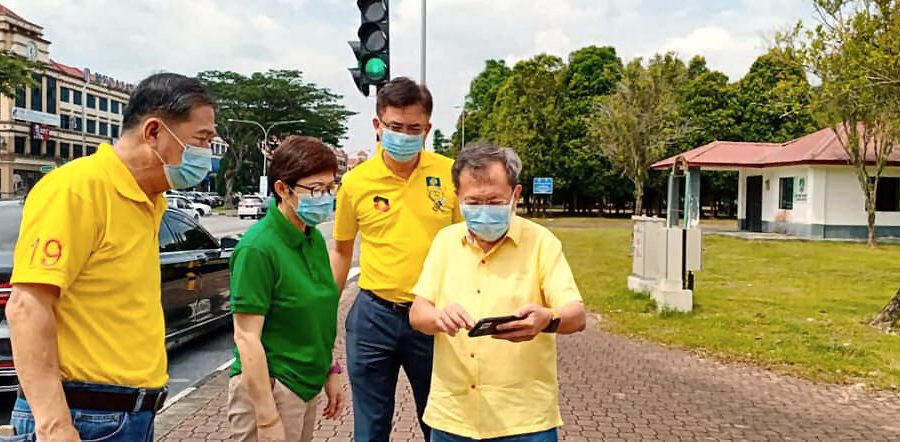 石角区议员拿督斯里沈桂贤日前在巴达旺市议会秘书伊丽莎白的陪同下,巡视并鉴定安装闭路电视的地点。