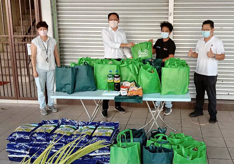 For each family, Chairman of Team Dynamics, Eric Tay Tze Kok contributed 5 kilos of rice, 2 bottles of soft drinks, biscuits and 20 pieces of masks each while Team Dynamic members contributed Mukah keropok.