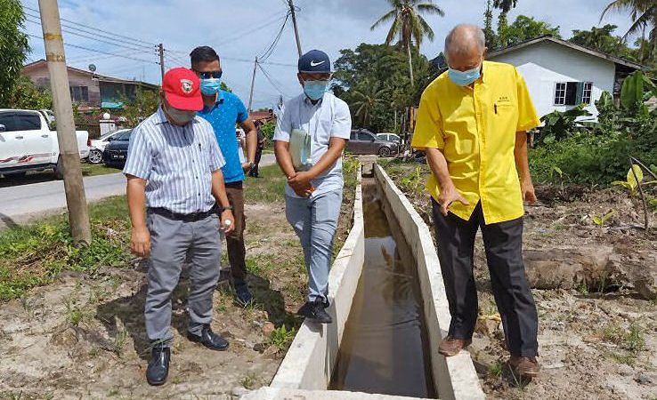 砂拉越人民联合党卑尔骚区议员拿督陈超耀律师日前巡视美里甘榜西莱排水系统工程,该工程目前已提前完工。