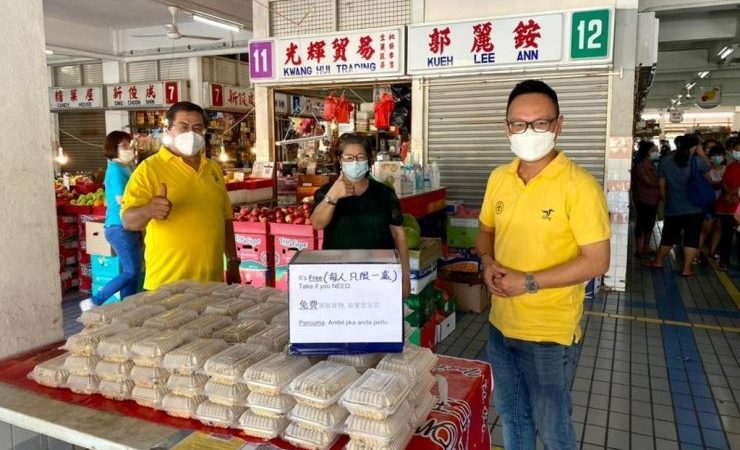 热心人士黄瑞銮女士透过甲必丹郑德平安排下,在肯雅兰菜市场早上9时30分总共分发了120份爱心免费便当给前来领取的民众。