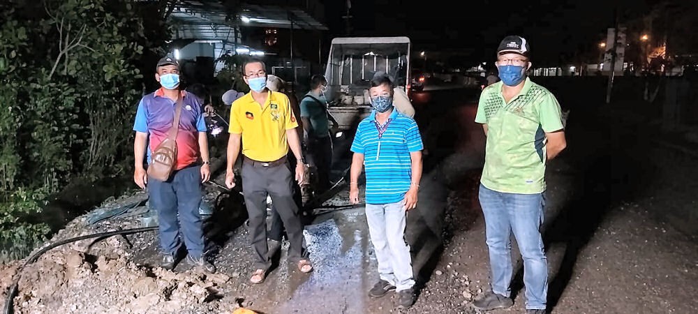 During a recent “turun padang” visit to Kota Sentosa Batu Tujuh area, residents complained about a burst main water pipe near the intersection of Jalan Liu Shan Bang and Jalan Bau causing great inconveniences to them. Following the request for assistance received, the complaint was immediately communicated to the Kuching Water Board and the burst main water pipe was repaired.