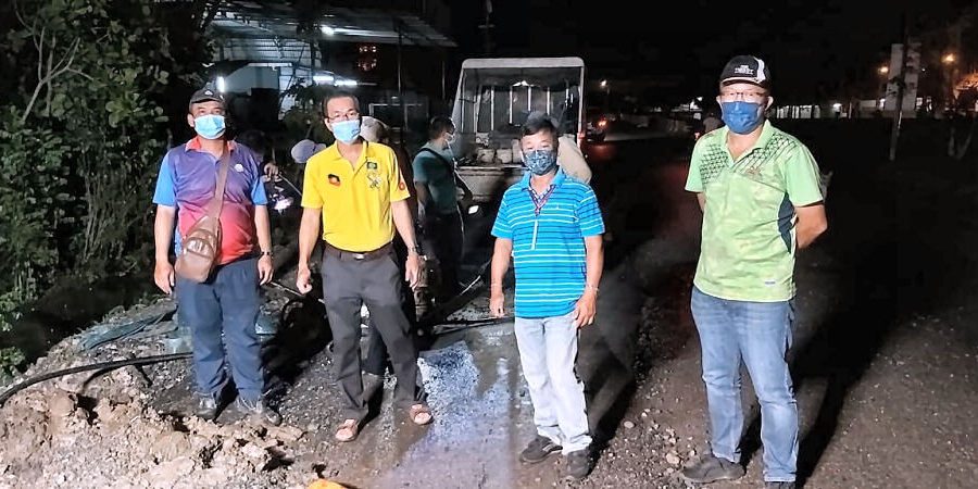 日前在7哩进行例行探访时接获居民投诉有关刘尚帮路与石隆门路交会处水管破裂,造成不便。叶耀星已即刻向古晋水务局反映,该水管现已修复。