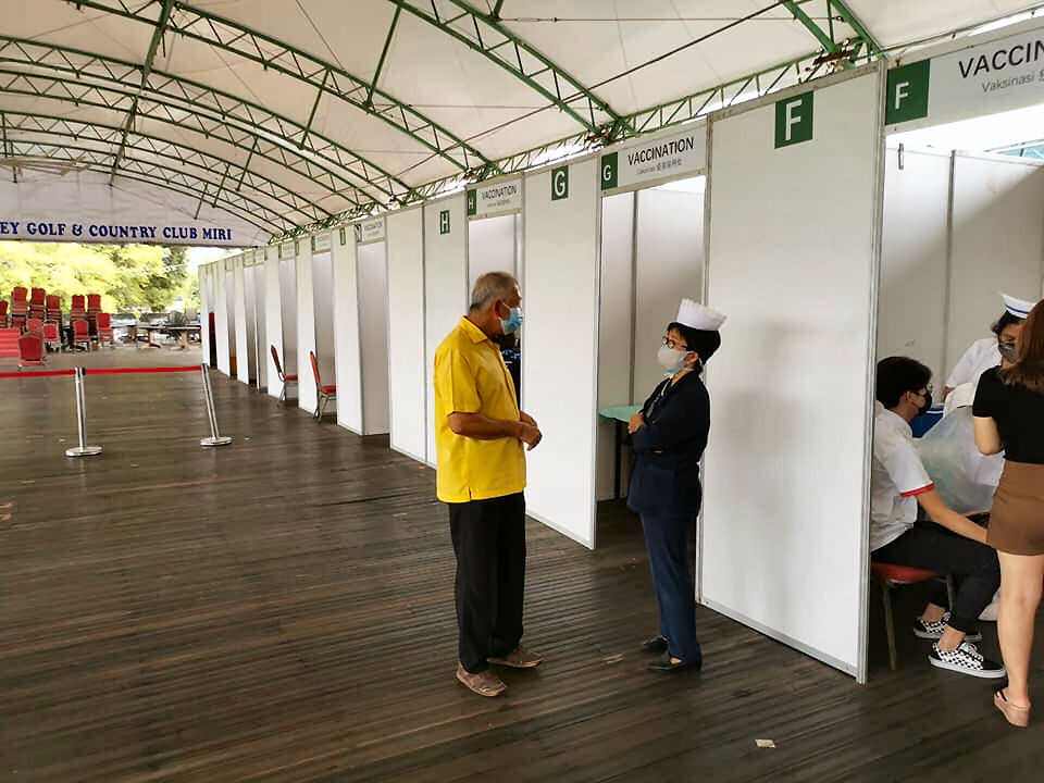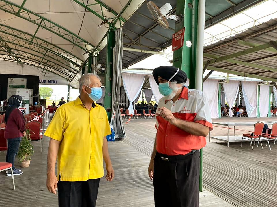 砂旅游、文化及艺术部助理部长兼卑尔骚区议员拿督陈超耀律师前往美里东林高尔夫球场冠病疫苗接种中心,视察当地青少年接种疫苗计划。