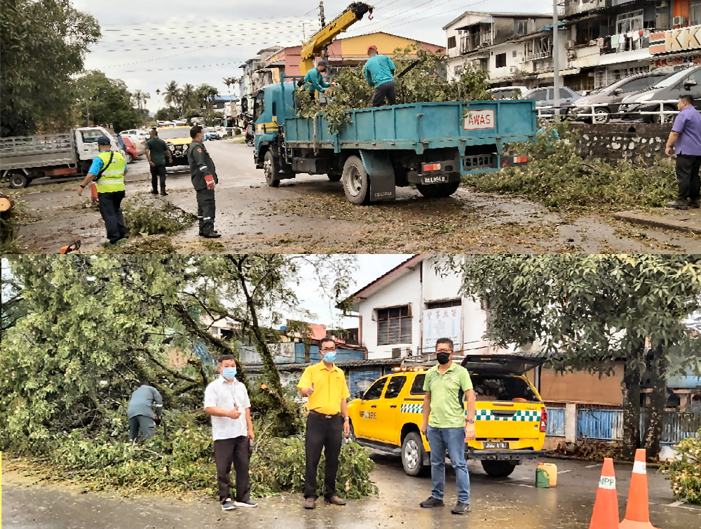 SUPP Public Complaints Bureau (PCB) Wilfred Yap with community leaders recently paid a visit to Kota Sentosa Batu Tujuh Old Bazaar to check on residents who complained about a fallen tree blocking the road and causing great inconveniences to them.