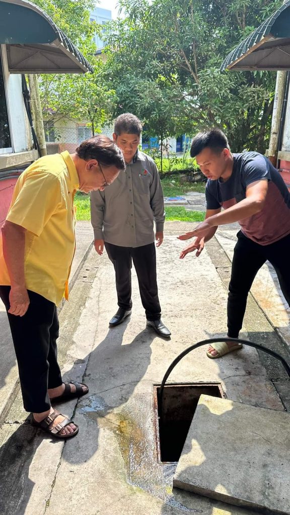 Lo Khere Chiang checking septic tank issues at Taman Flora Indah