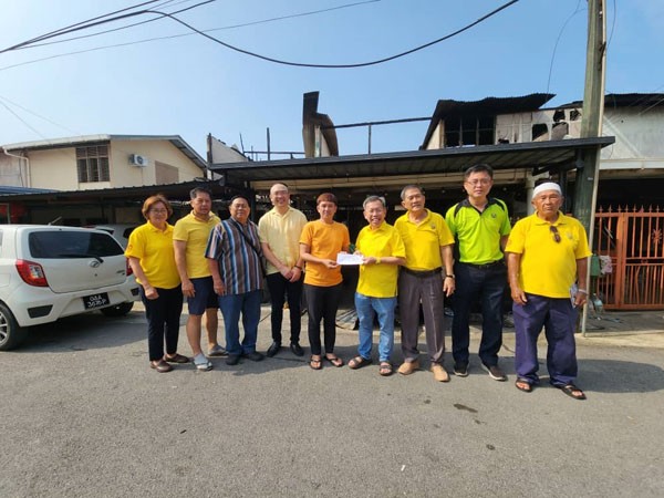 沈桂贤第二度访问石角路廉价房屋火灾现场和移交第二笔体恤金,稍后也前往疏散中心,见证晋汉连省华总移交物资仪式。