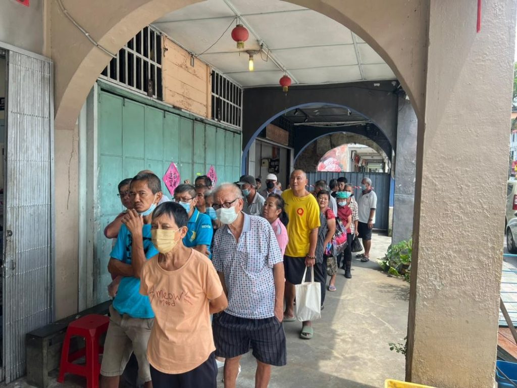 A total of 100 packets were handed out to members of the public who queue up as early as 11 am.