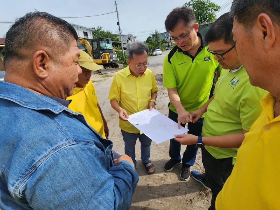 Deputy Premier, Dato Sri Dr Sim Kui Hian with MPP Chairman, Tan Kai went to the site at Lorong Stapok to see the progress of drainage upgrading from earth drain to concrete recently.