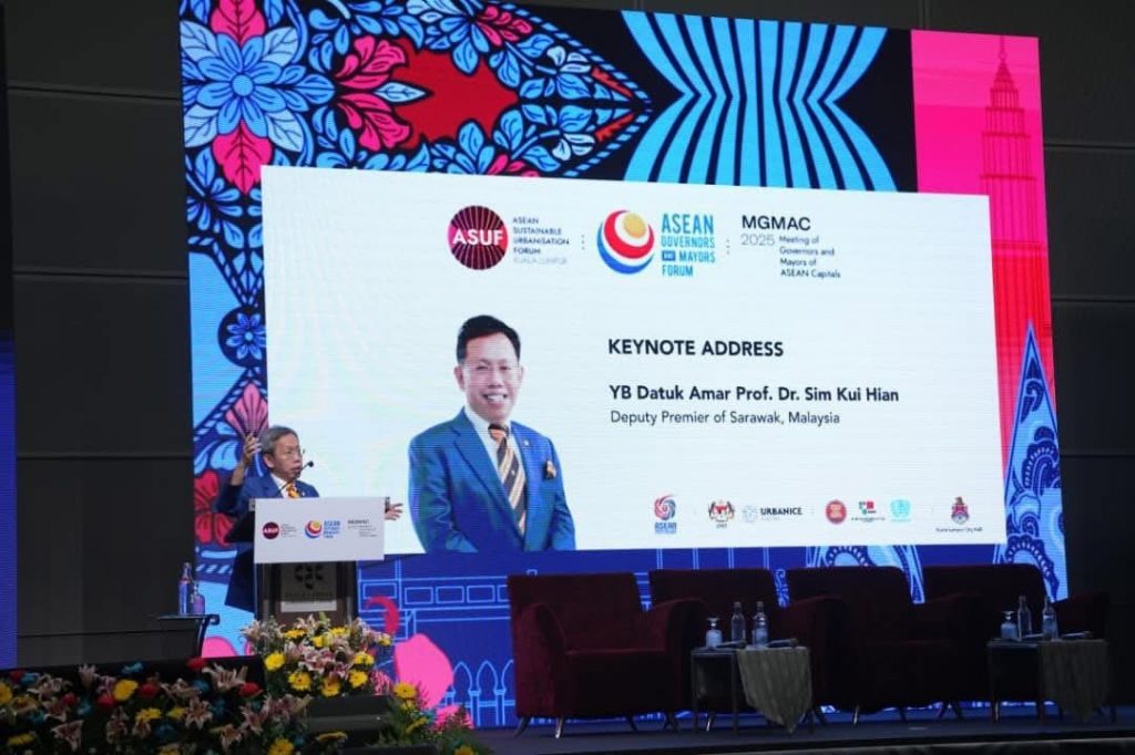 砂副总理兼公共卫生、房屋及地方政府部长拿督阿玛沈桂贤受邀出席东盟可持续城市化论坛,并发表主题“健康与永续城市:砂拉越经验”演讲,向与会代表分享砂城市发展理念与实践。