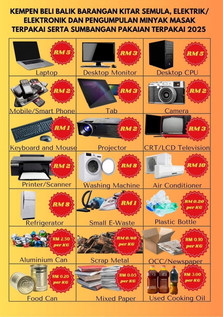 A price list for recyclables, e-waste, and used cooking oil will also be provided at the campaign site.